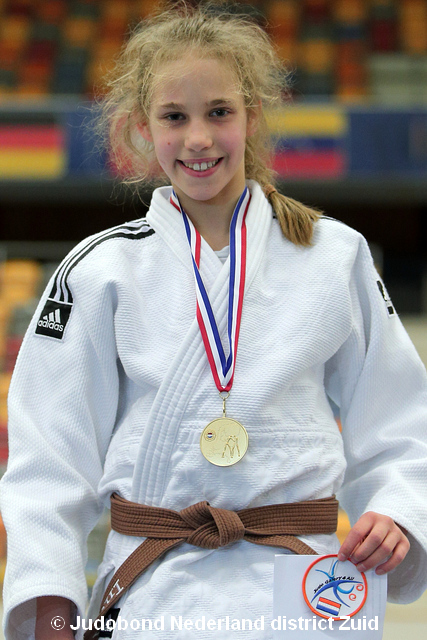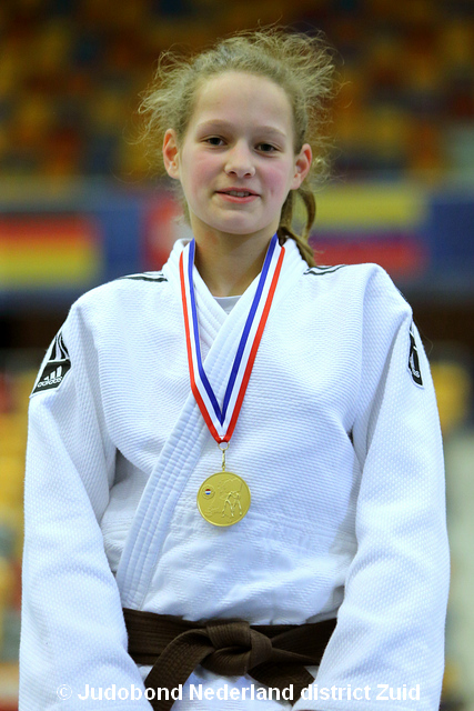 Indy Godschalk pakt het kampioenschap in de klasse -36 kg. In de finale versloeg zij de Zuid-Hollandse Fleur de Ruijter.