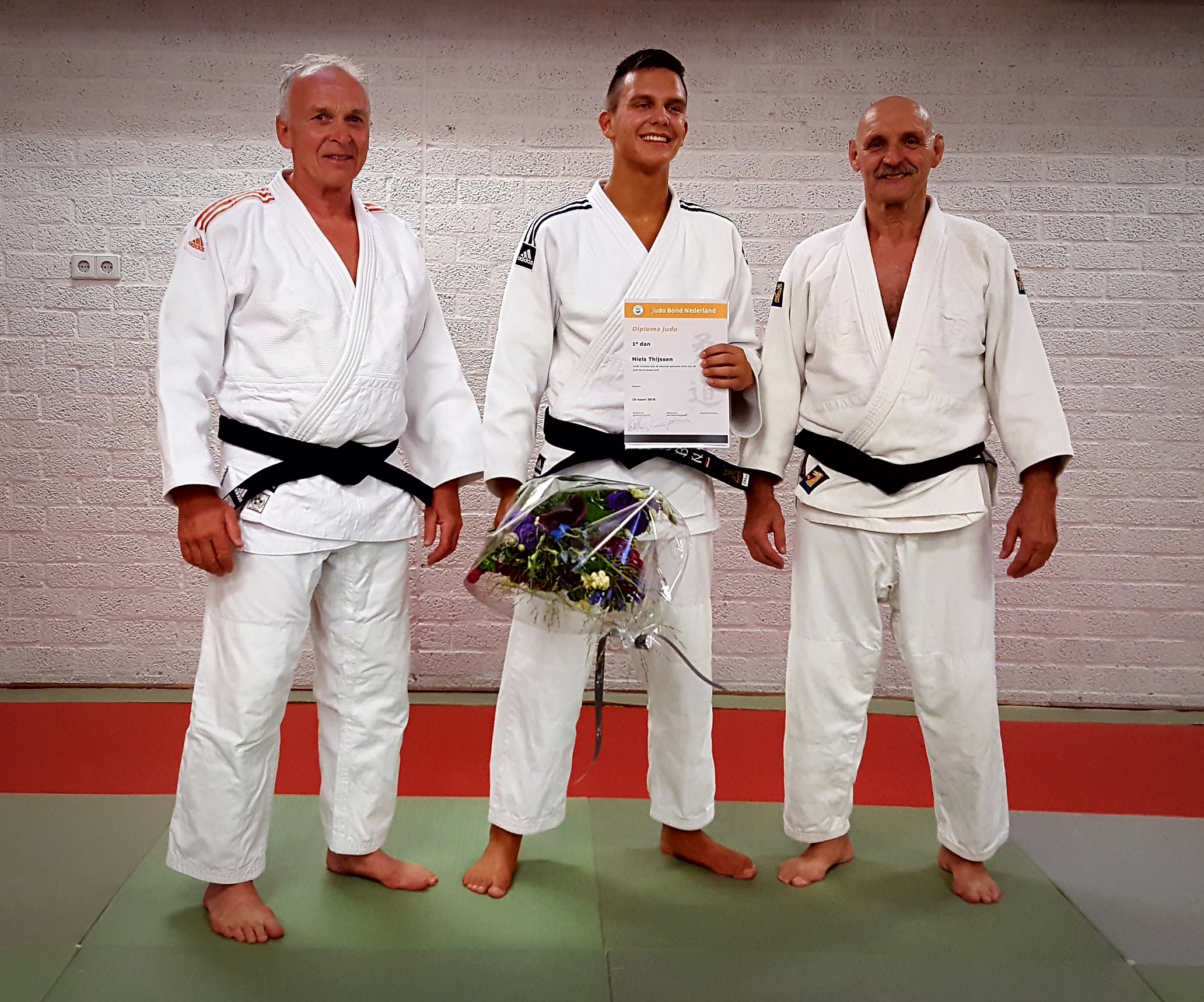 Op maandag 20 augustus, tijdens de eerste les van het nieuwe judo seizoen, ontving Nederlands kampioen Niels Thijssen zijn zwarte band met bijbehorend diploma uit handen van Cor van der Heijden.