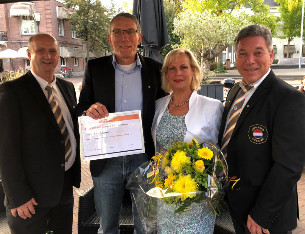 Zondag 16 september 2018 zat judo en jiu-jitsu leraar Leo Verhoeven (6e Dan in beide sporten!) in Geldrop op een terrasje, samen met enkele (oud)collega’s, om op aangename wijze de pensionering van Leo te vieren.